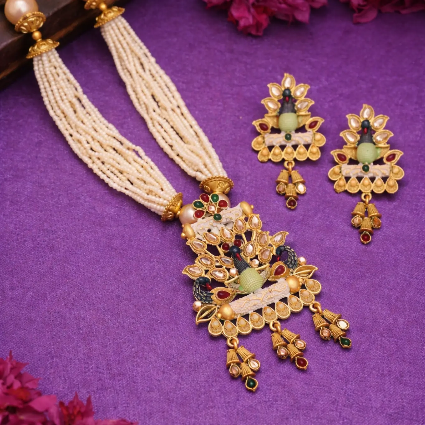 Designed for special occasions, this necklace beautifully complements sarees, lehengas, and ethnic ensembles.